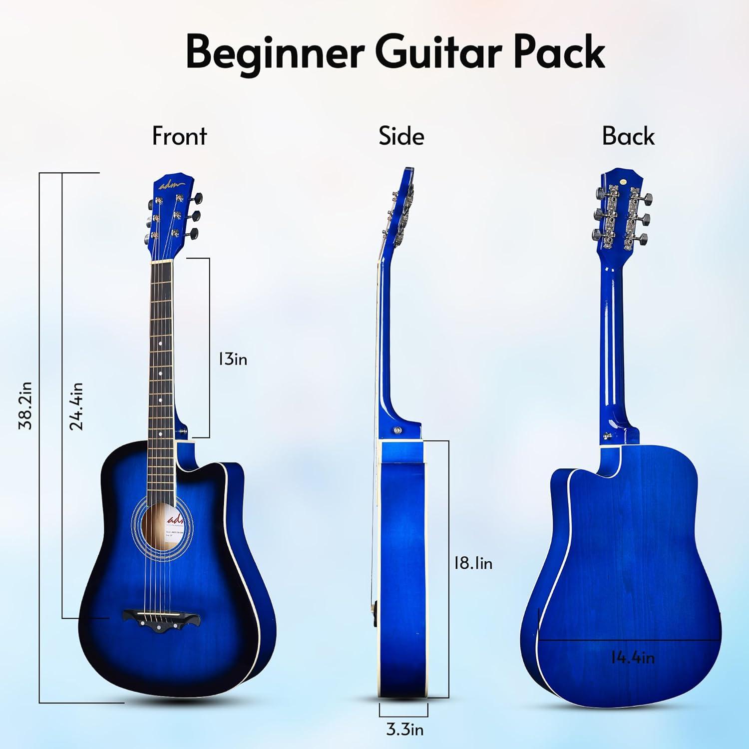 Maximum Playability: ADM 38-inch acoustic guitar with a cutaway body, producing a full and vibrant tone suitable for various musical styles; Its design optimizes playability and tone for beginners, providing a quality instrument that encourages learning and growth