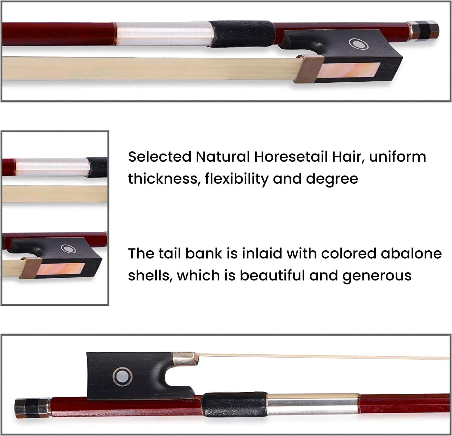 imageADM 44 Full Size Student Violin Bow Well Balanced Handmade Brazilwood Bow with Horsehair Ebony Frog with Pearl Eye and Pearl Slide Brown34 Size