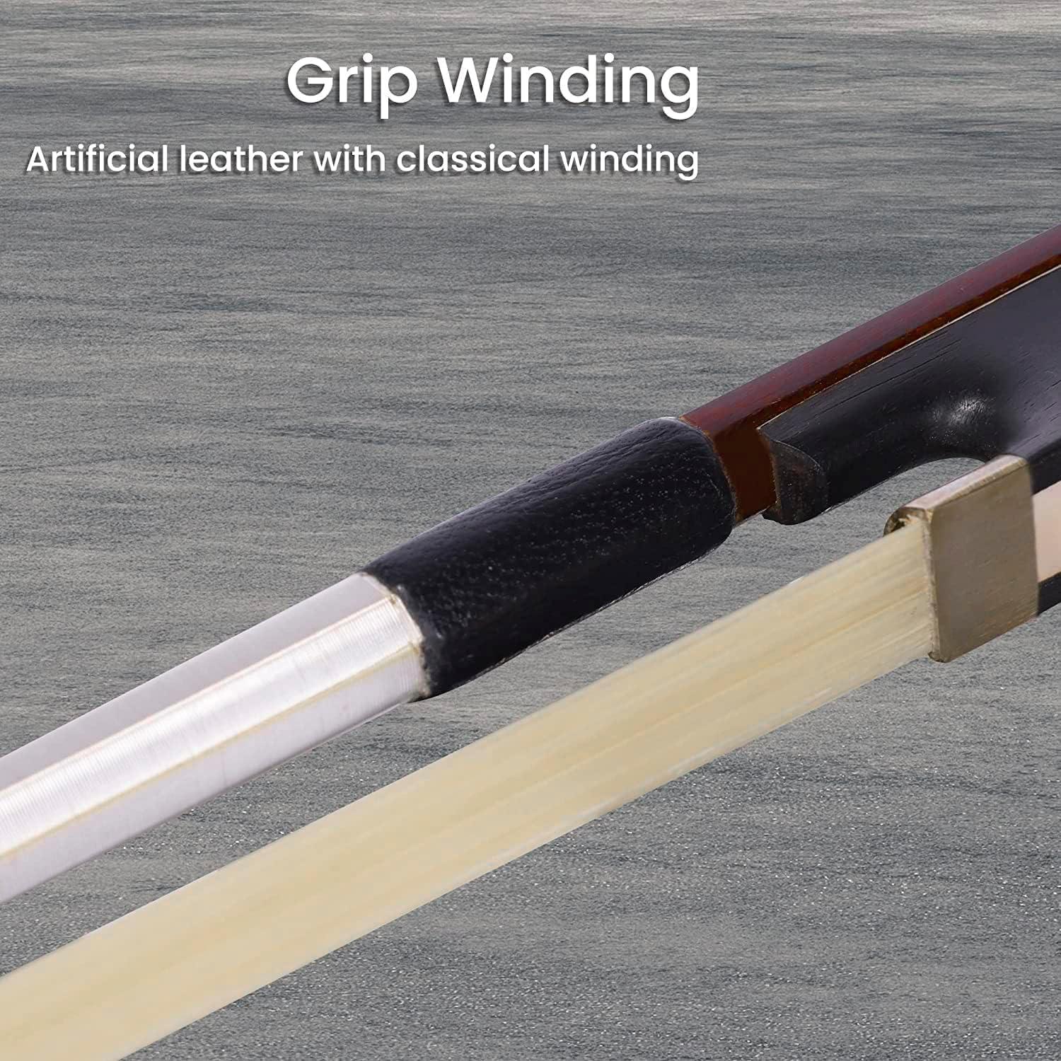 ADM 4/4 Full Size Student Violin Bow, Well Balanced Handmade Brazilwood Bow with Horsehair, Ebony Frog with Pearl Eye and Pearl Slide, Brown(1/2 Size)