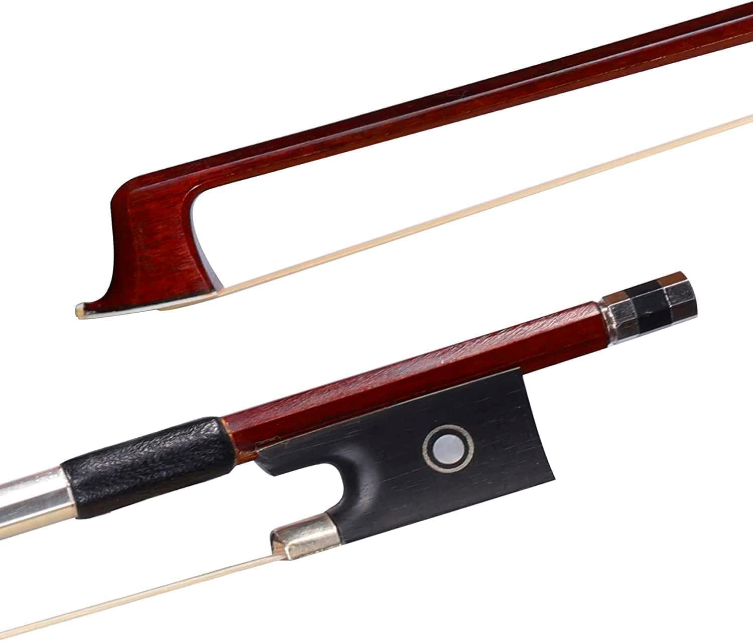 ADM 4/4 Full Size Student Violin Bow, Well Balanced Handmade Brazilwood Bow with Horsehair, Ebony Frog with Pearl Eye and Pearl Slide, Brown(3/4 Size)