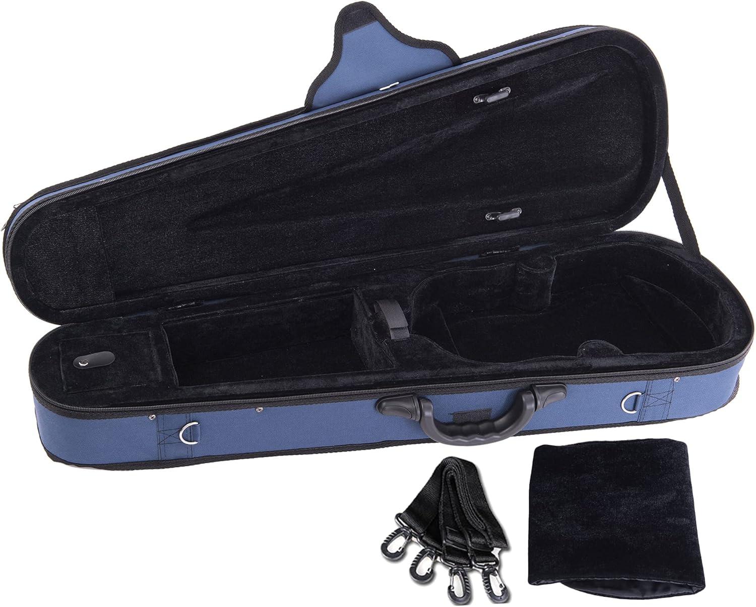 ADM 4/4 Full Size Violin Hard Case Basic Professional Triangular Shape Backpack, Super Light Suspension, Black(Blue)