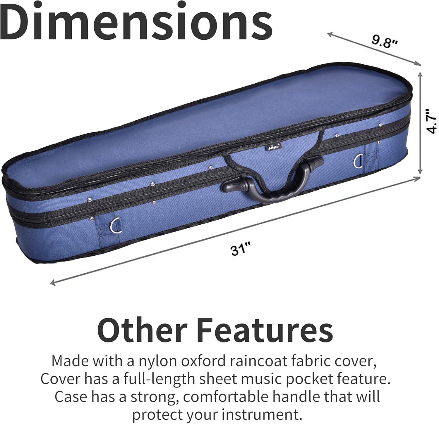 imageADM 44 Full Size Violin Hard Case Basic Professional Triangular Shape Backpack Super Light Suspension BlackBlue