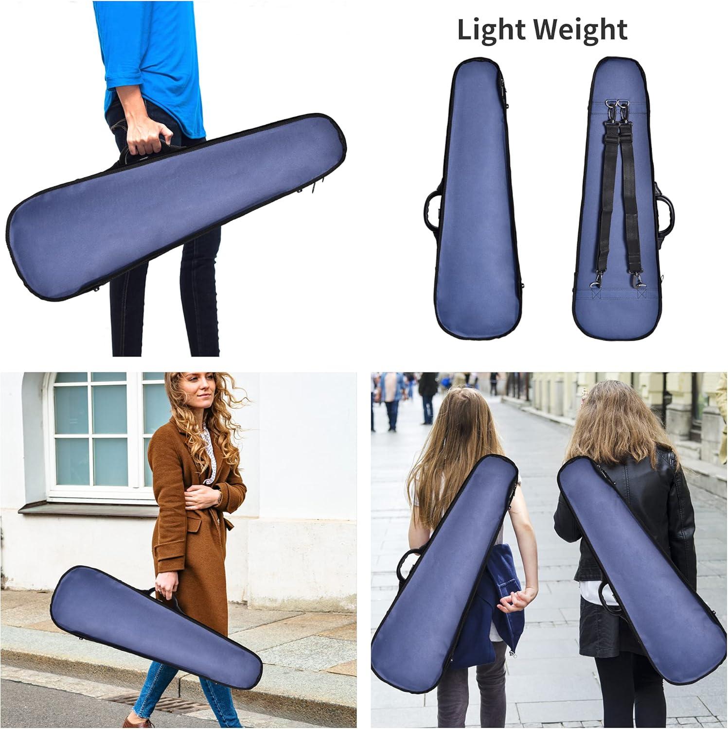 【ULTRA-LIGHT】 The outer cover farbric is lightweight waterproof Nylon Oxford raincoat, and the interior is made of Soft velvet-like material to prevent scratching. The total weight of the violin case is just 2.6lbs, lighter and easier to carry and store.