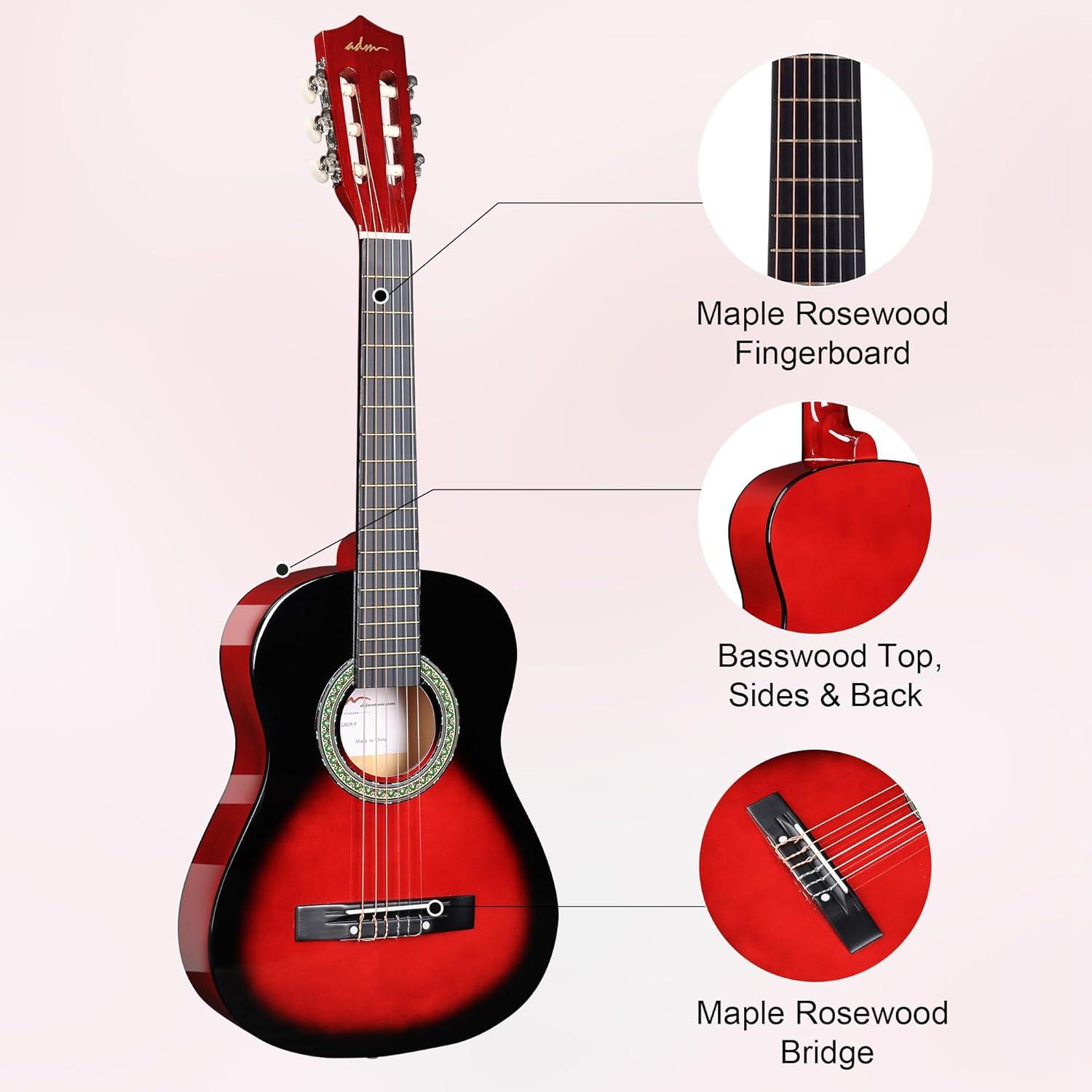 imageADM Beginner Acoustic Classical Guitar 30 Inch Nylon Strings Wooden Guitar Bundle Kit for Kid Boy Girl Student Youth Guitarra Online Lessons with Gig Bag Strap Tuner Extra Strings PicksBlack 1Red