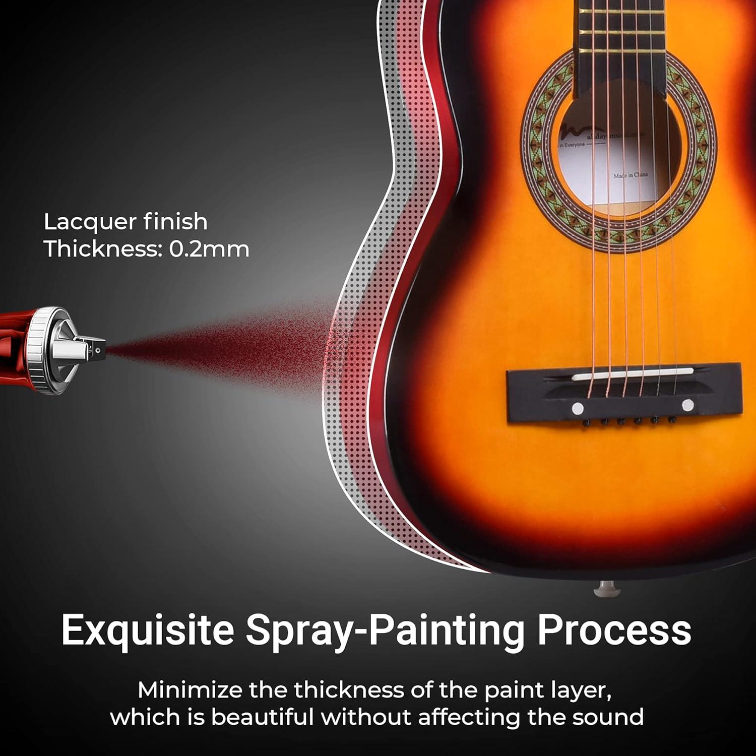 TOP QUALITY MATERIALS: Our 30 inch acoustic classical guitar top, back, and sides are made of laminated basswood; the maple Rosewood fingerboard and bridge provide a comfortable playing feel; The three nylon strings and three steel strings design will make it your favorite musical instrument