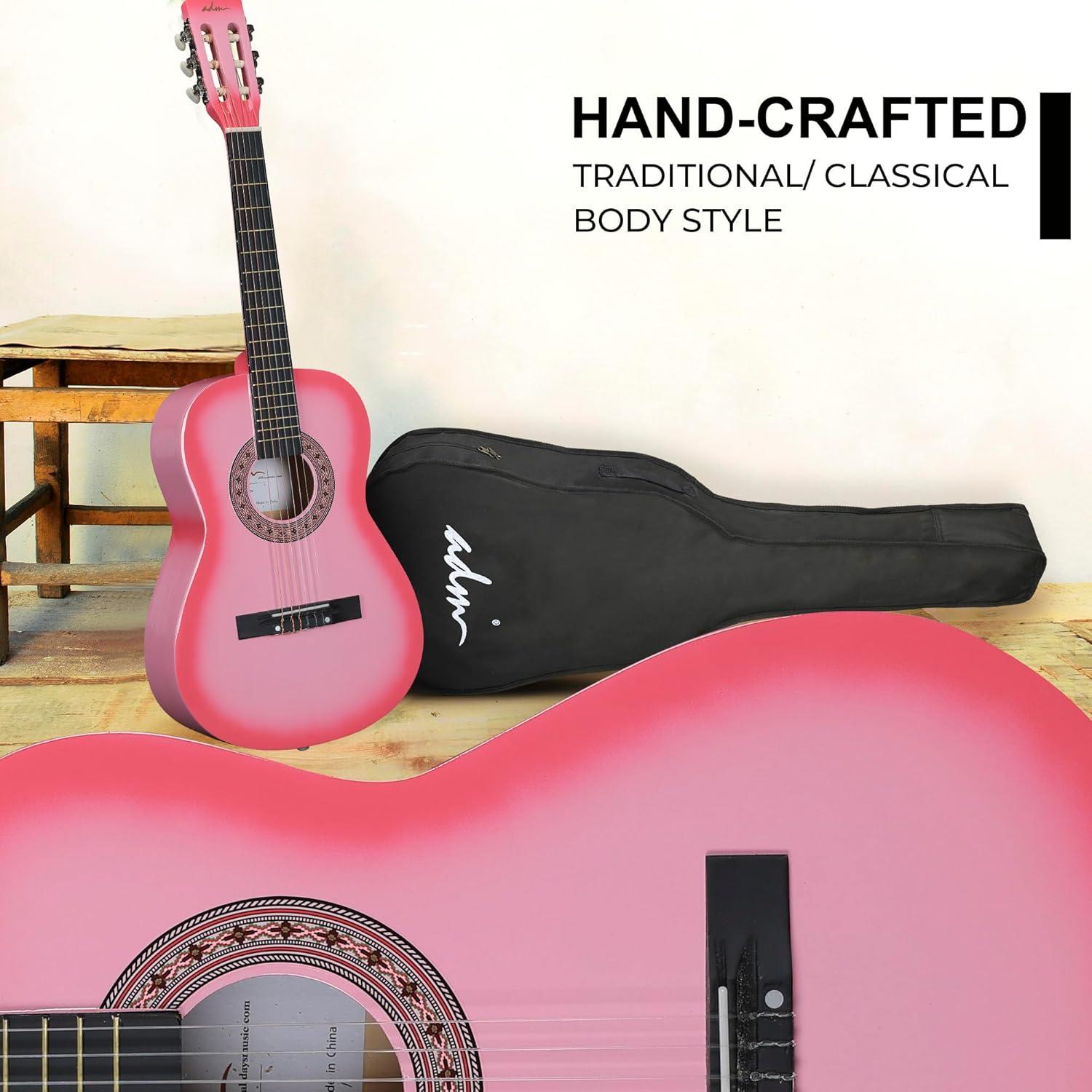 imageADM Beginner Acoustic Classical Guitar 30 Inch Nylon Strings Wooden Guitar Bundle Kit for Kid Boy Girl Student Youth Guitarra Online Lessons with Gig Bag Strap Tuner Extra Strings PicksPink 1Pink