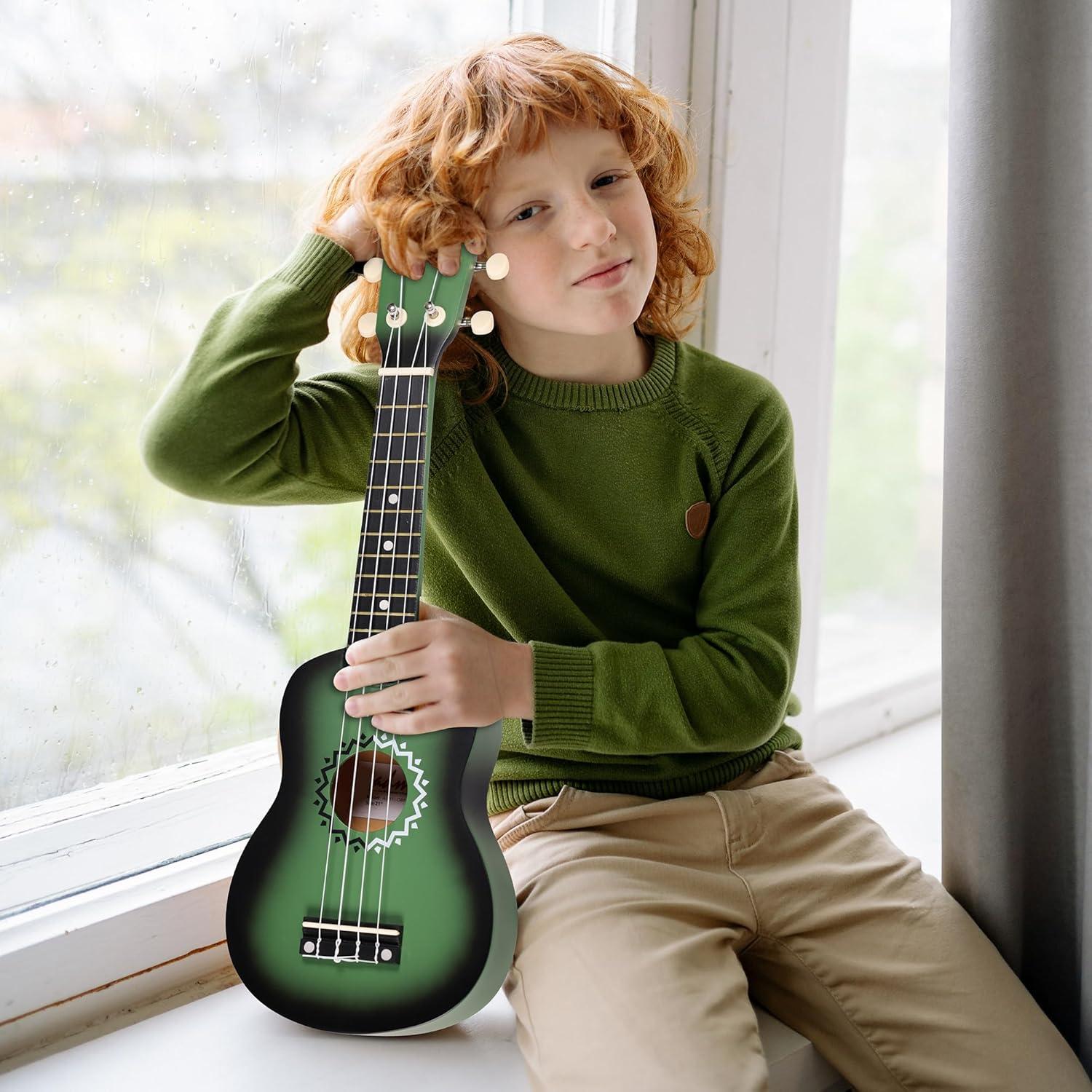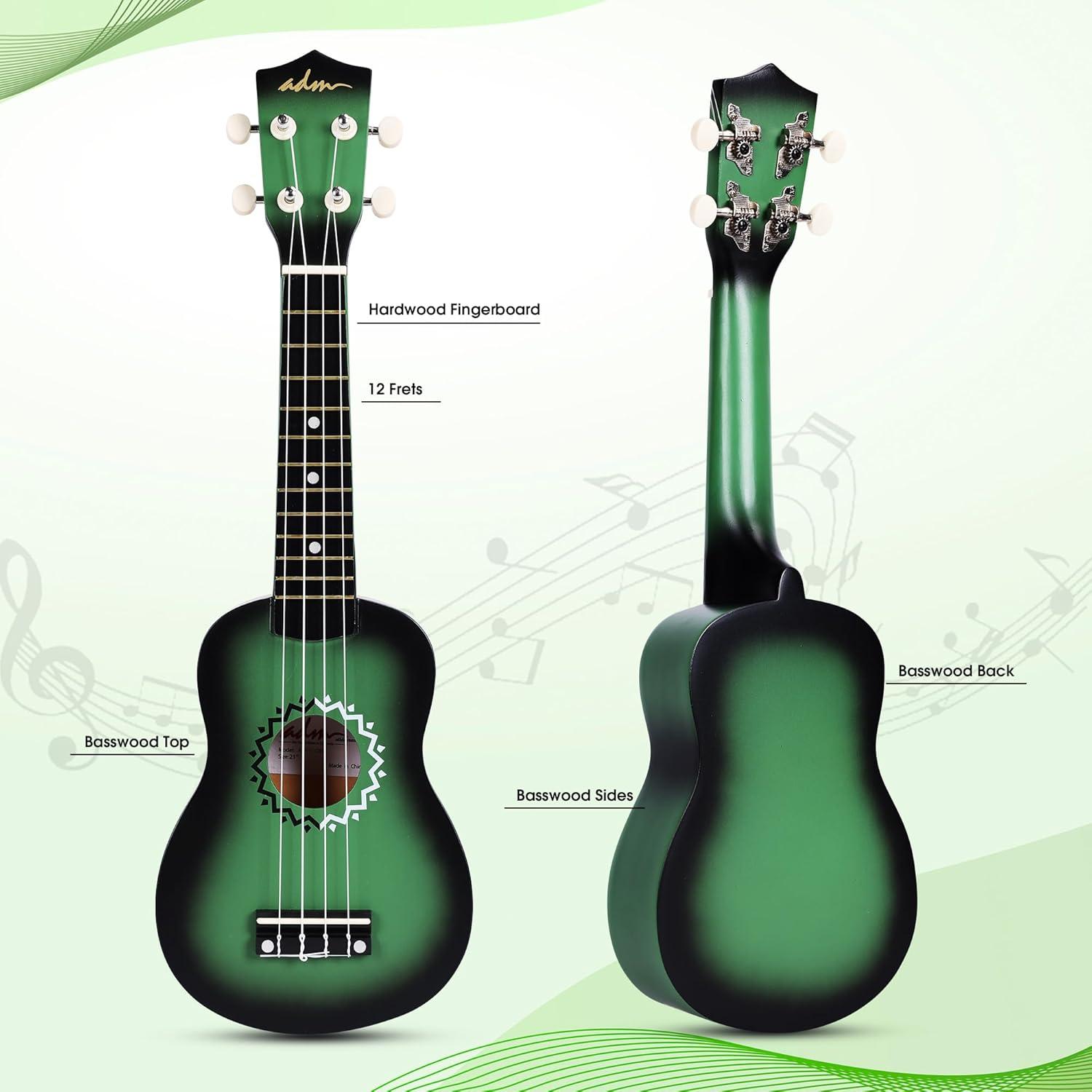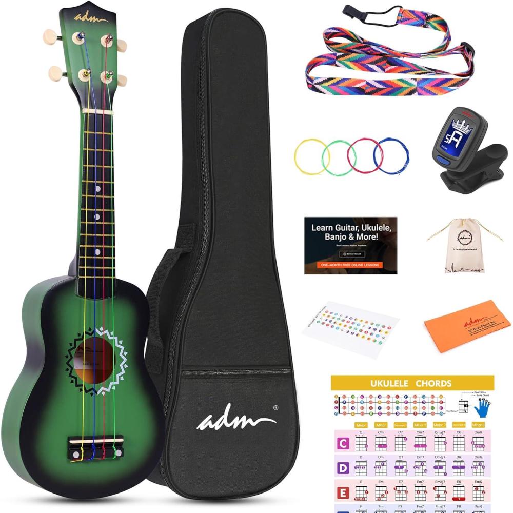 imageADM Ukulele for Beginners Hawaiian Wood Ukelele Kit for Kids Adult Student Starter Professional Ukalelee Pack Bundle with Free Lessons Gig Bag Strap Nylon String Tuner BrownSapele 21 InchGreenbrust
