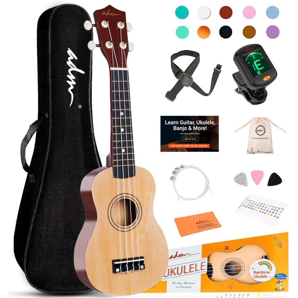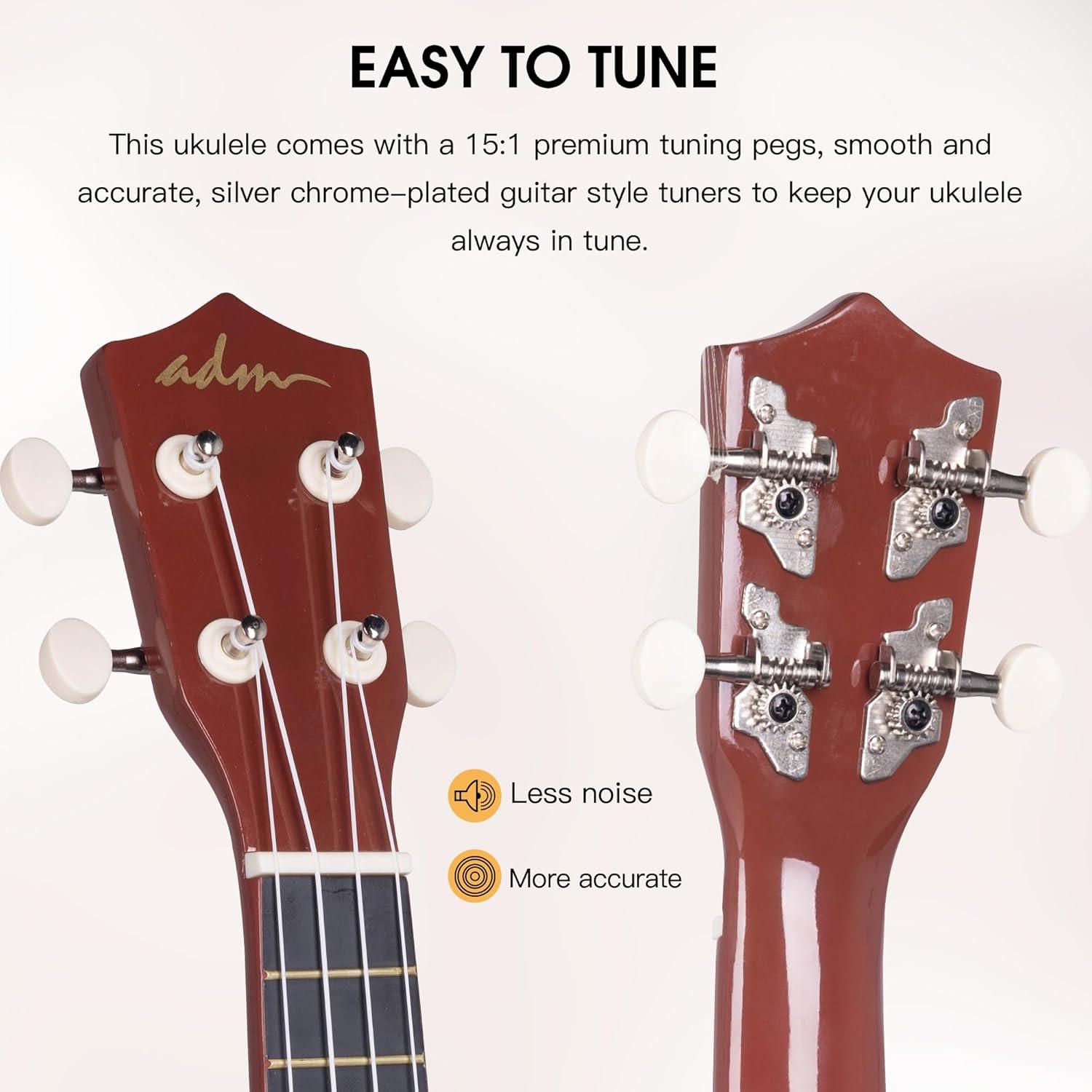 ♫【GREAT GIFT FOR BEGINNERS】Save your hand and earned money on costly lessons, our ADM soprano ukulele together with the beginners pack is the best choice for adults or kids who are just getting started with Ukulele. Great for birthdays, Christmas, Children’s Day, housewarming, graduation gifts and much more. Now you can teach yourself the ukulele, thanks to our all-inclusive beginner's kit