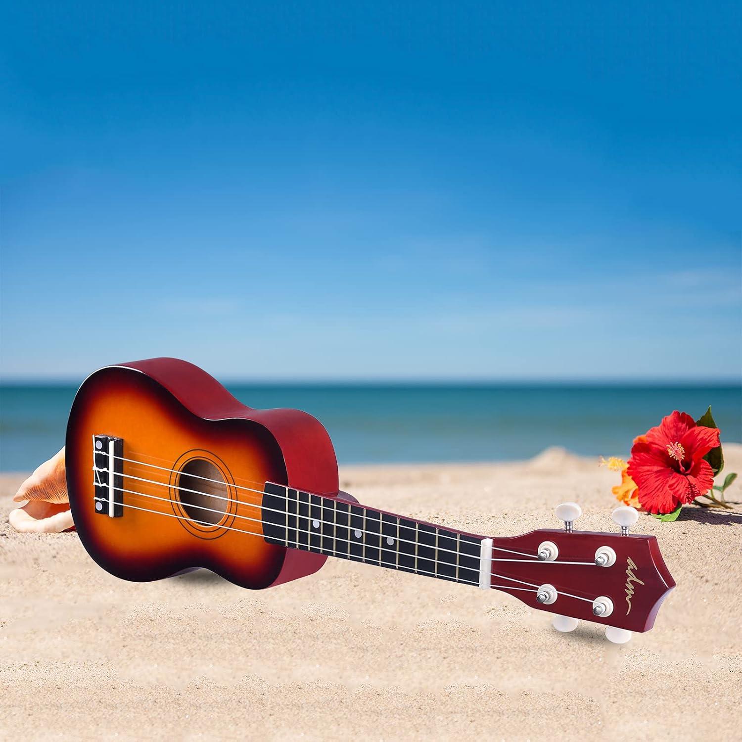 ADM Ukulele for Beginners Hawaiian Wood Ukelele Kit for Kids Adult Student Starter Professional Ukalelee Pack Bundle with Free Lessons Gig Bag Strap Nylon String Tuner (Brown-Sapele, 21 Inch)(Sunset)